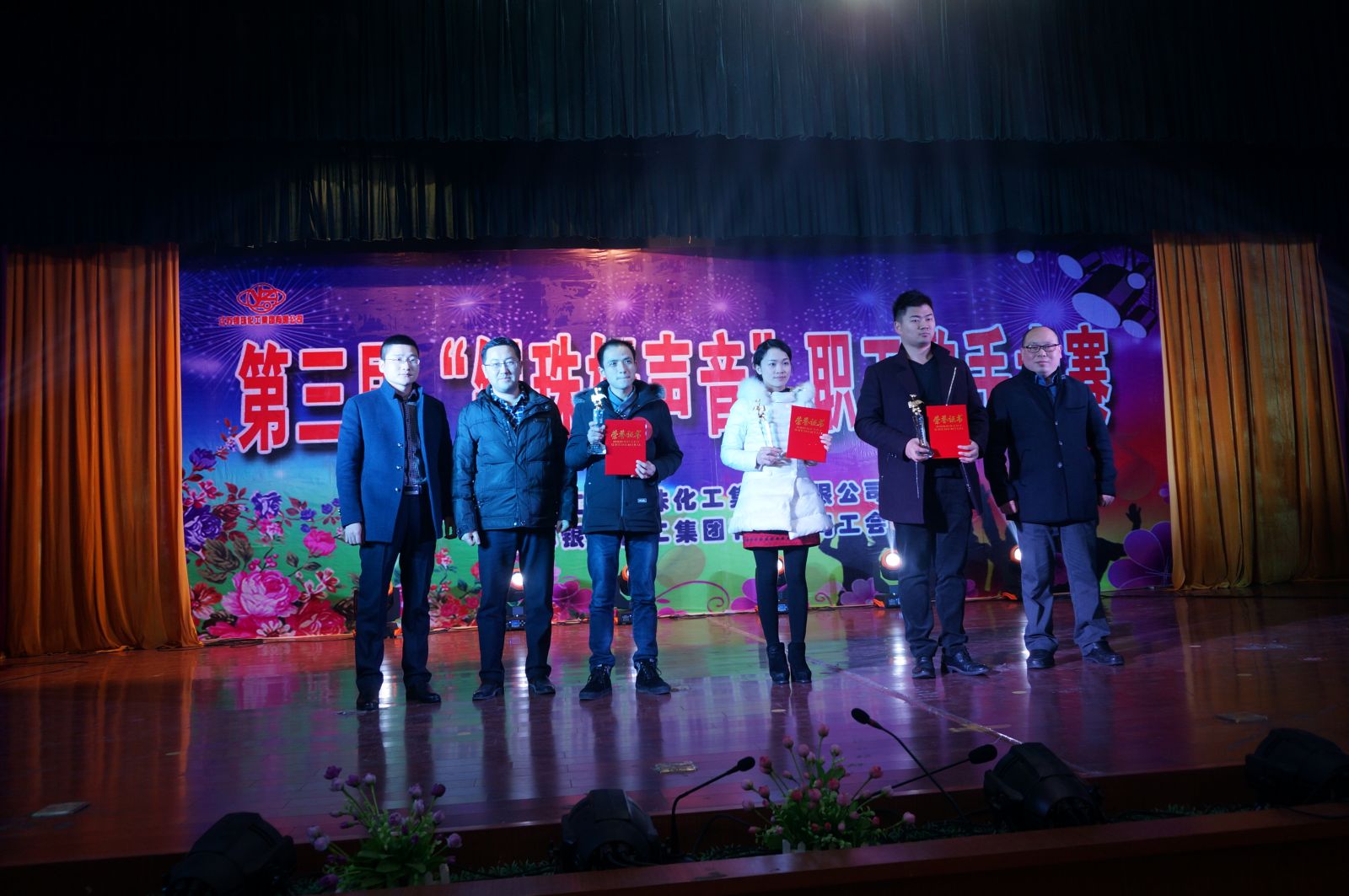 201612月27日下午,由江苏银珠化工集团主办的第“银珠好声音、职工好形象”大赛在夕阳红大院拉开了帷幕,公司工会主席仲其国同志致欢迎辞,总工会杨主任音乐舞蹈家协会陈元副主席以及区文化馆余馆长亲临现场观摩、指导。经过初赛、决赛两轮激烈的角逐,硝盐厂唐伟同志以一首张宇的《雨一直下》荣获一等奖,荣获二等奖的同志有:硝酸厂江勇、大洋元明粉盛中原,另外银珠科室袁小曼、戴梦特公司电仪车间的曹军中盐淮安鸿运盐化有限公司万宇翔荣获三等奖。