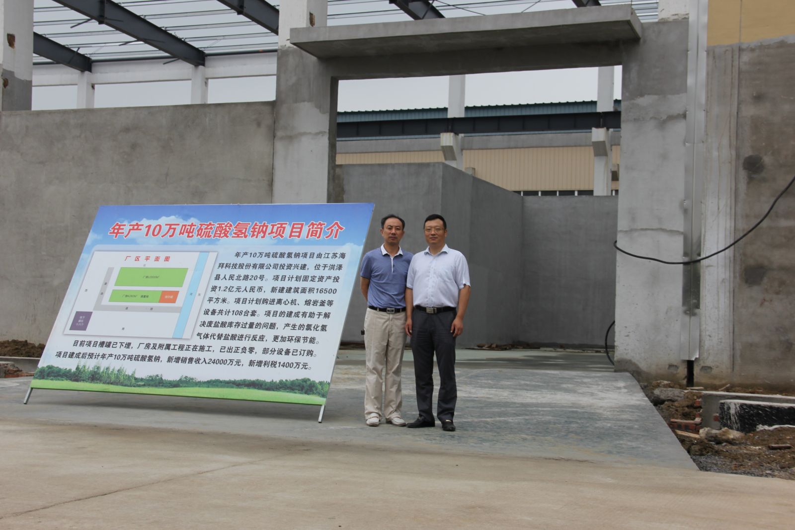 8月12日上午,区委朱亚文书记一行来我公司调研在建年产10万吨硫酸氢钠项目,集团公司李林总经理,海拜科技仲其国董事长、卢爱萍总经理陪同调研。在施工现场,仲其国董事长向朱书记介绍了在建项目的进度。朱书记强调,要保证项目质量,确保施工安全。同时,朱书记希望企业能够抓住市场机遇,进一步加快项目建设进度,争取早日建成投产。