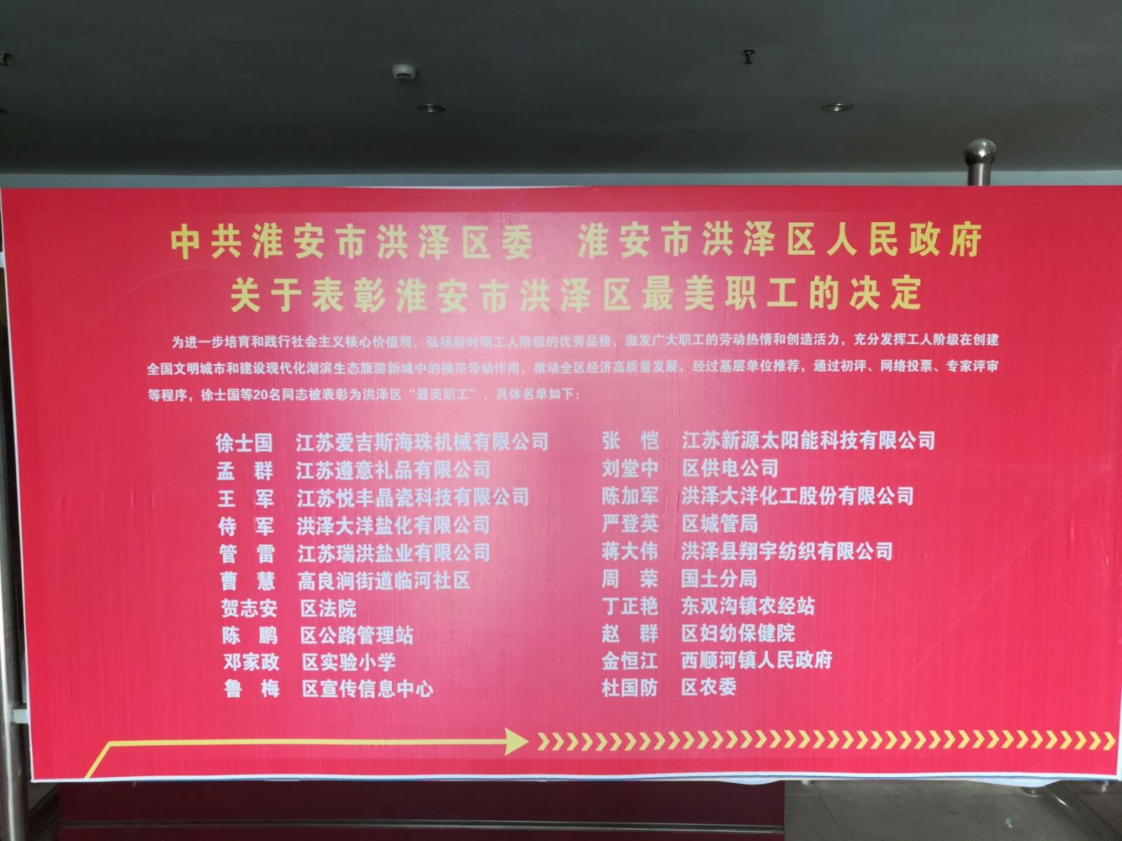 4月27日下午,中共淮安市洪泽区委、洪泽区人民政府举办洪泽区“我们的节日·悦读阅美”中华经典诵读工程“劳动光荣,无私奉献”经典诵读暨庆五一颁奖典礼。