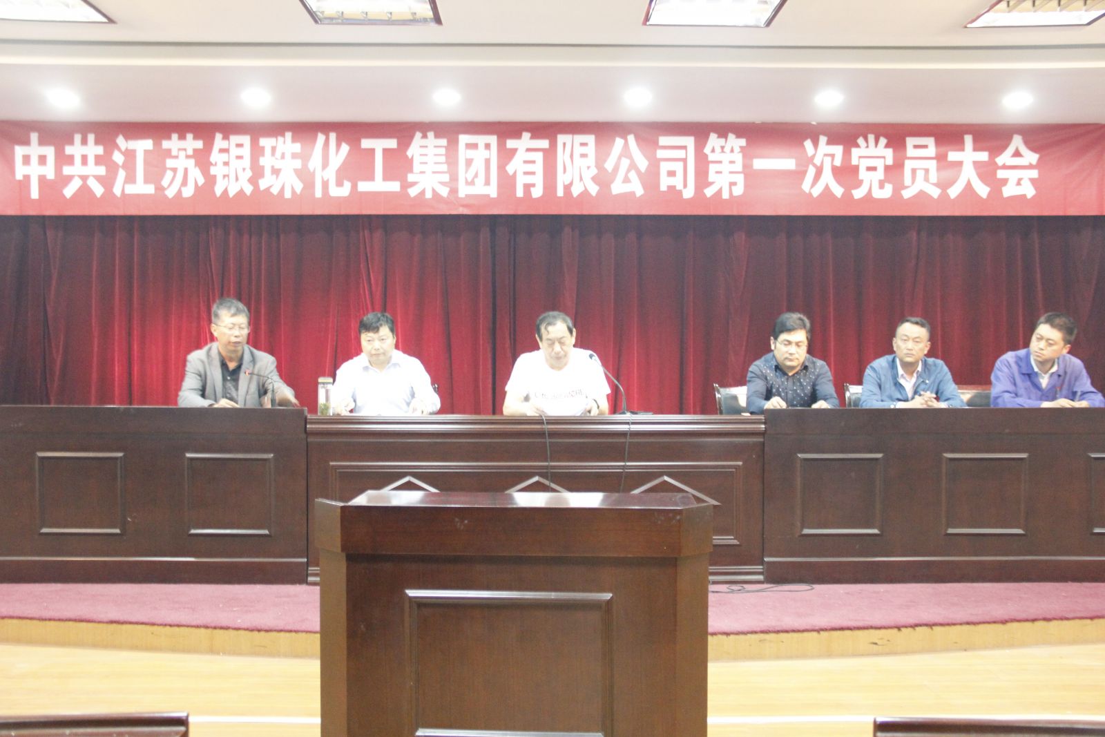 2018年5月12日下午,江苏银珠化工集团有限公司召开第一次全体党员大会。大会在公司三楼会议厅举行,大会由上一届党委委员主持。大会认真听取、审议并一致通过了李立同志代表集团公司党委所做的题为《高举旗帜  万众一心  扎实工作为银珠集团转型升级、稳健发展而努力奋斗》的工作报告。大会的71名党员以无记名差额选举的方式,选举出李立、仲其国、李长新、楚叶波、魏绍领为第三届党委委员;李立为第三届党委书记,仲其国为党委副书记。