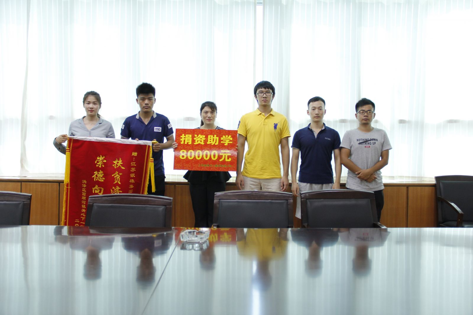 捐助仪式上,洪泽区西顺河镇关工委向我公司赠送了“扶贫济困助学子 崇德向善献爱心”的锦旗。我公司捐资助学活动已举办多年,本期资助活动已连续捐助4年,先后资助学生7名,共捐助资金8万元。