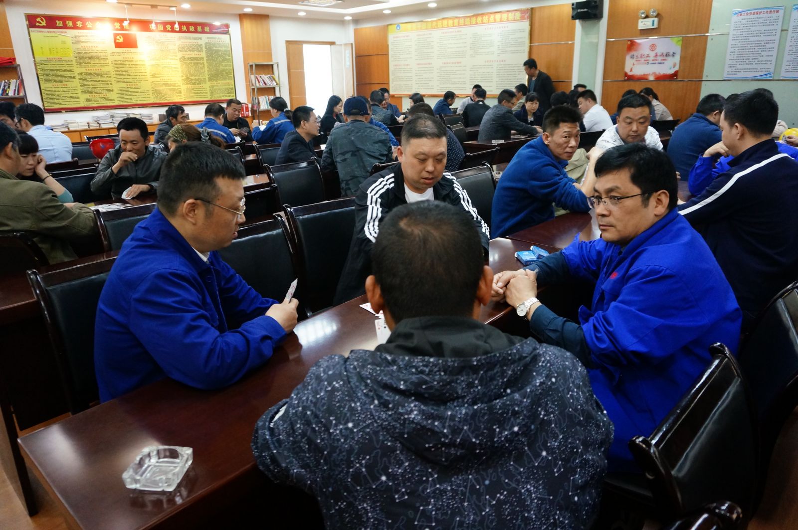 为迎接五一国际劳动节,丰富员工业余文化生活,充分展现员工们团结协作、奋勇争先的精神风貌,近日,银珠集团工会在会议室举办迎五一“银珠杯”掼蛋比赛活动。